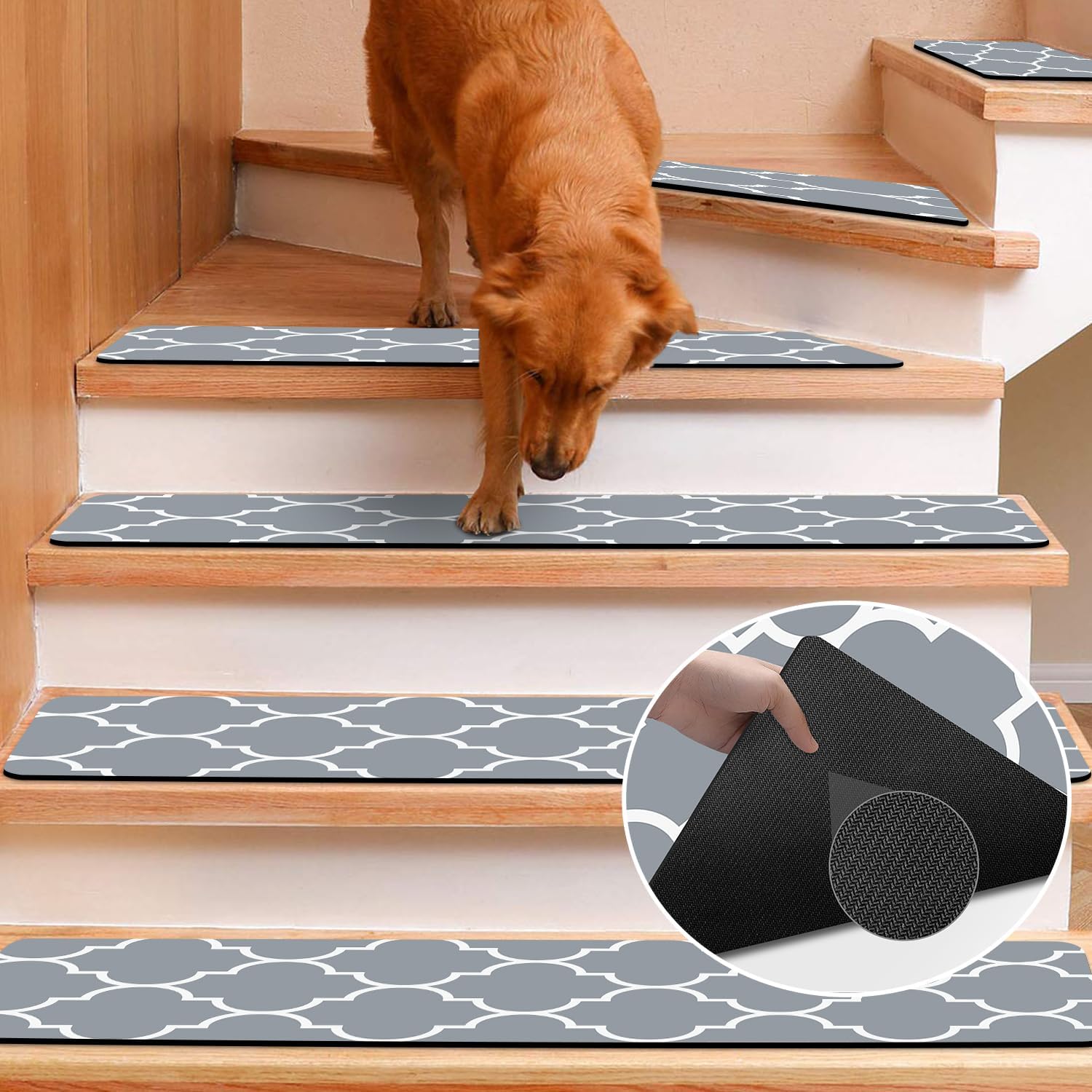 - Rubber Backed: Non slip stair treads indoor will not destroy your stairs at all, for the bottom that we created is no glue or tapes or tacks, won’t be any residue when you remove stair tread rugs from the steps.