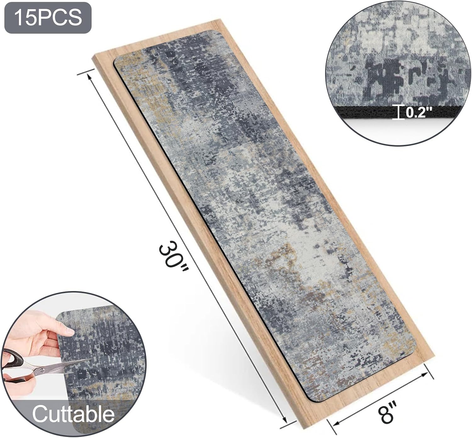 - Easy to Install & Free Cutting: The installation of our stair covers for wood stairs is very easy and convenient. Simply clean and dry your stairs, then lay the mats in place, allowing for a quick and easy installation in minutes. The 8” x 30” non slip stair treads indoor fits for many staircases with easy trimming, you can cut it to match unique stair dimensions or corners.